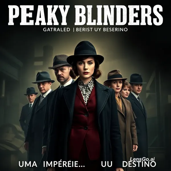 AI Image: Crie um pôster cinematográfico da série Peaky Blinders, versão brasileira, ambientado nos anos 1920,