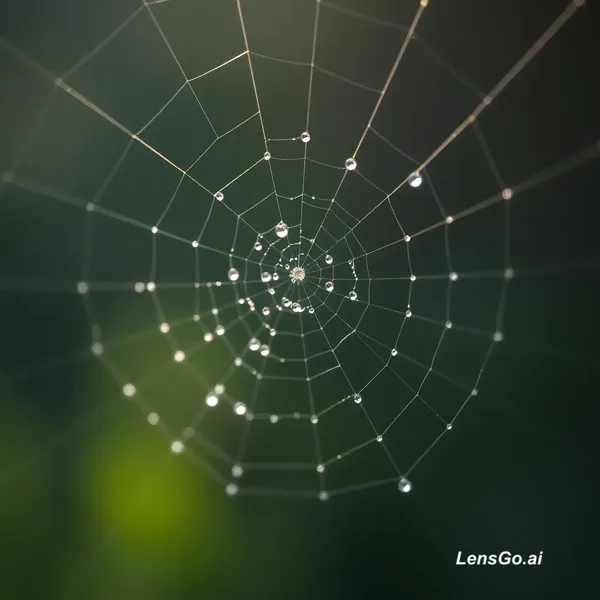 AI Image: Macro photograph of morning dew on spider web, bokeh background