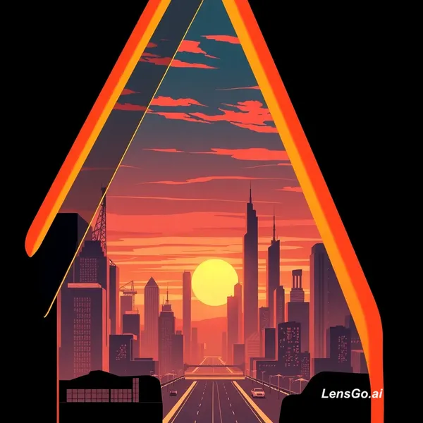 AI Image: Art deco poster of a futuristic city skyline at sunset