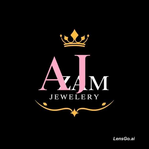 mujhy ail logo bana kar dain jis ka background black ho . or bahir goal cercale ho ligh pink color ka. cercale ke indar sab sy uper aik king ka taj ho gold color ka us k nichy Heading main 'AJ' likha ho gold color ka us ke nichy aik line ho light pink color ki line ke nichey ' AZAM JEWELRY ' Likha ho Light green color ka us K Nichey aik line ho light pink color ki us ke nichey Online Shoping ki Shoping Trali Ho Gold Color ki . Acha sa bana kar dain