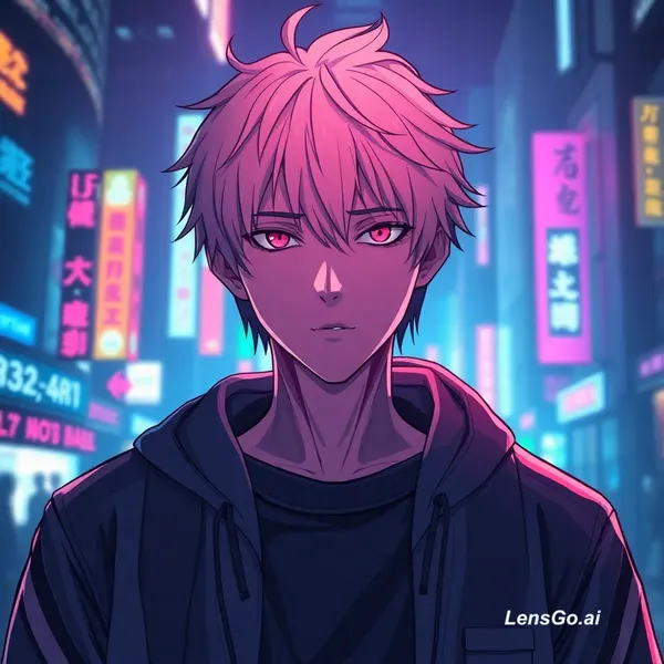 AI Image: “Transform this anime character into a futuristic cyberpunk style, glowing neon city background, cin