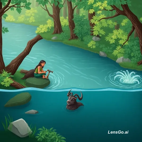 AI Image: Once upon a time, there was a poor woodcutter who lived near a river. Every day, he went into the fo