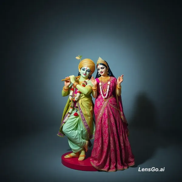 AI Image: Smooth 360-degree krishna radha in barsana soft studio lighting, shallow depth of field, clean backg