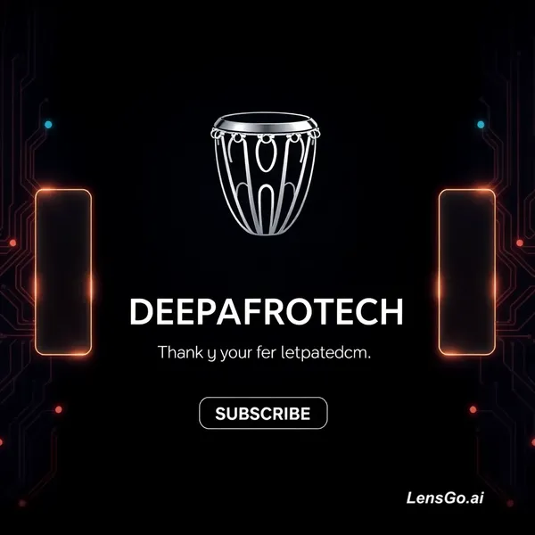 AI Image: A professional YouTube end screen template for a brand called 'DeepAfroTech'. Centered is the origin