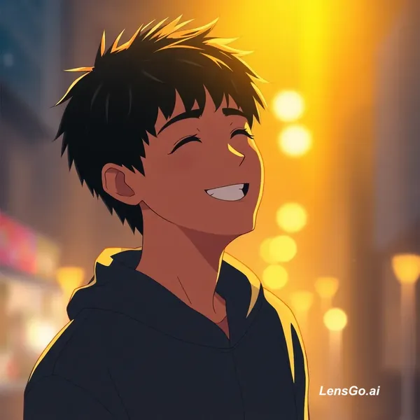 AI Image: young black man, joyful memory, soft warm light, nostalgic atmosphere, anime style, glowing light, p