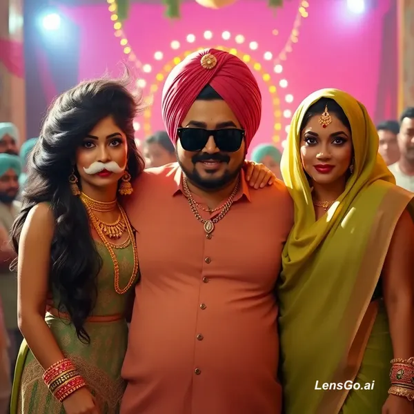 AI Image: ⸻ 🎥 Scene 1: Grand Entry – Swag Wali Party 📍 Punjabi pind da mela 🎉 Characters: • 🥛 Lassi (Femal