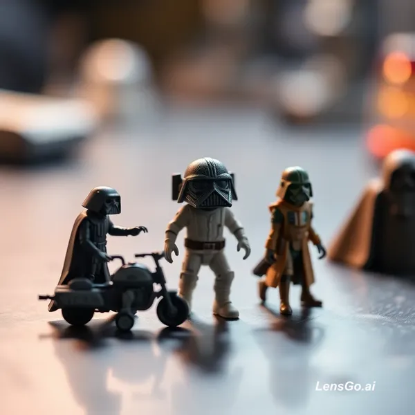 AI Image: Miniature Star Wars inspired creatures walking across a tabletop, tiny detailed figurines with soft