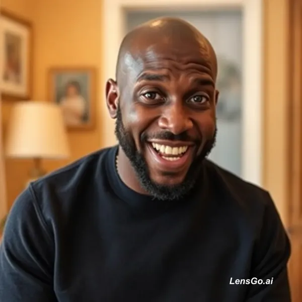 AI Image: Black man with a bald head at home, doing comedy