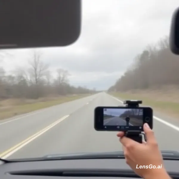 AI Image: A video record of a moving car filmed from inside the car.