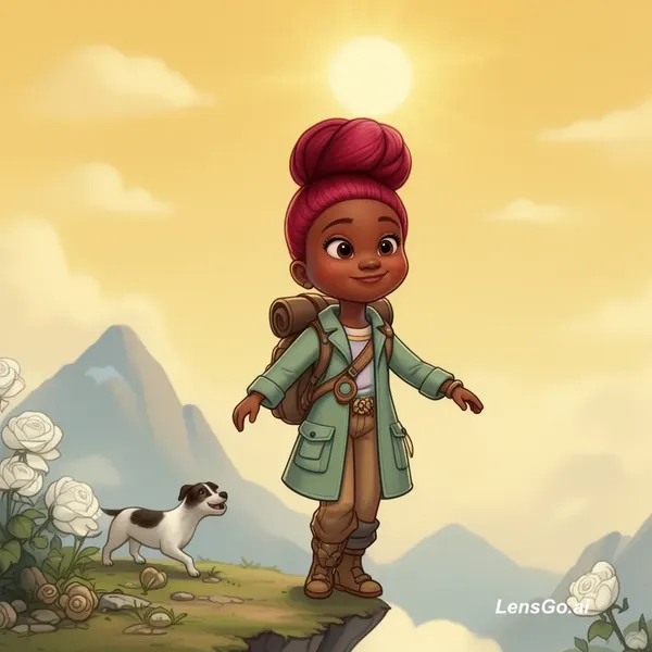Recreate this exact image in Disney style art. But Make the character wear a fashionable travelers outfit.