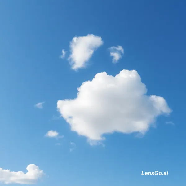 AI Image: White clouds moving across a clear blue sky quickly, timelapse style, bright daylight, fluffy cumulu