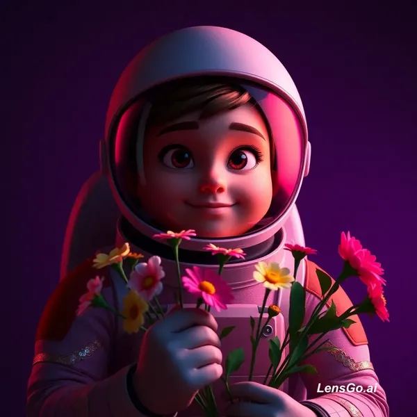 AI Image: Studio portrait of an astronaut holding flowers, dramatic lighting