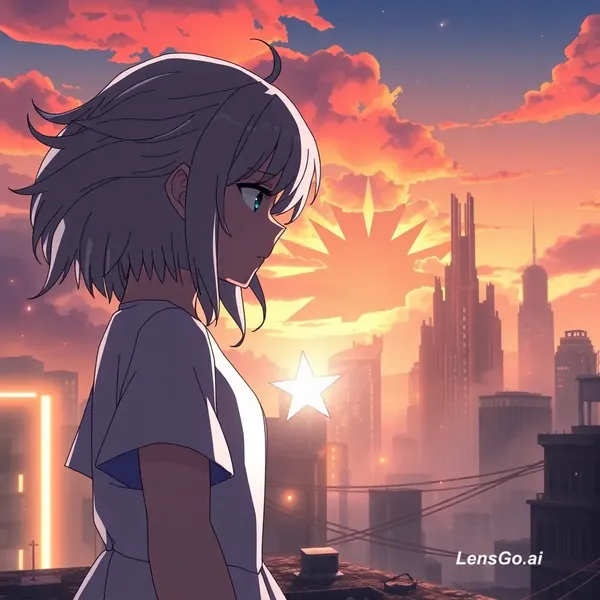 Here’s a short **anime-style script** you can use for LensGo AI. It’s written with clear visuals, dialogue, and scene directions so you can easily convert it into shots. --- ## 🎬 **Title: “Echoes of the Last Star”** **Genre:** Sci-Fi / Action / Emotional **Length:** Short (3–5 minutes) --- ### 🌌 Scene 1 – The Fallen Sky **[Wide cinematic shot]** A ruined futuristic city at sunset. Buildings cracked. Neon lights flicker. Ash falls like snow. **NARRATOR (V.O.)** In the year 2147… the sky fell silent. **[Cut to close-up]** A teenage girl, **HANA (17)**, silver hair glowing faintly, stands on a rooftop holding a broken star-shaped pendant. **HANA (whispers)** You promised you'd come back… **[Wind blows. Her hair glows brighter.]** --- ### ⚡ Scene 2 – The Awakening **[Sudden BOOM. A dark creature crashes onto the street below.]** Shadow monster with glowing red cracks across its body. **CITIZENS (screaming)** Run!! **[Hana’s eyes glow blue.]** **MYSTERIOUS VOICE (echoing in her head)** The last star bearer… must rise. **HANA** I’m not a hero… **VOICE** You are the light they fear. **[Energy bursts from her pendant. It reforms into a glowing blade of starlight.]** --- ### ⚔️ Scene 3 – Battle of Light and Shadow **[Fast-paced anime fight sequence]** – Hana dashes forward in a flash of blue light. – The monster swings — she narrowly dodges. – Buildings crack as energy blasts collide. **MONSTER (distorted roar)** STAR… MUST… END… **HANA (shouting)** Then I’ll