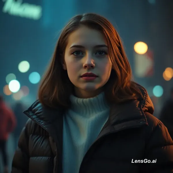AI Image: A vampyre teenager girl in a puffer jacket