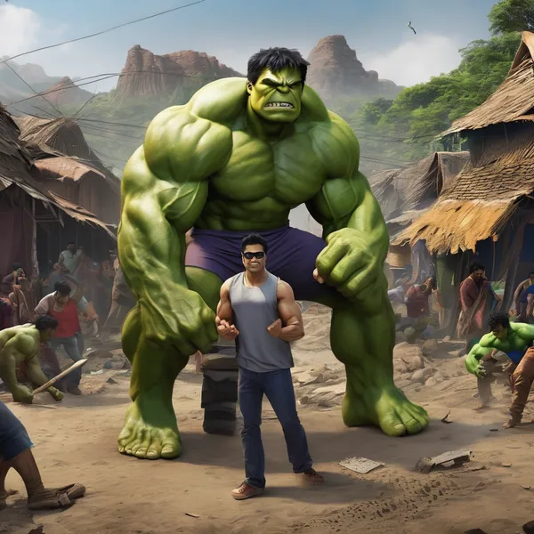 AI Image: Realistic hulk village ke raaste se jaata hua dikhao