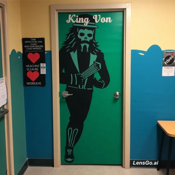 AI Image: we have a door decorating competition, the door has to reflect who you are as a person. I love King
