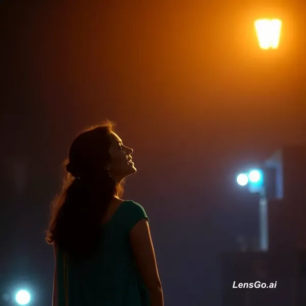 AI Image: Ek tanha larka barish me khara hai. Raat ka waqt hai, shehar ki lights dhundli nazar aa rahi hain. U