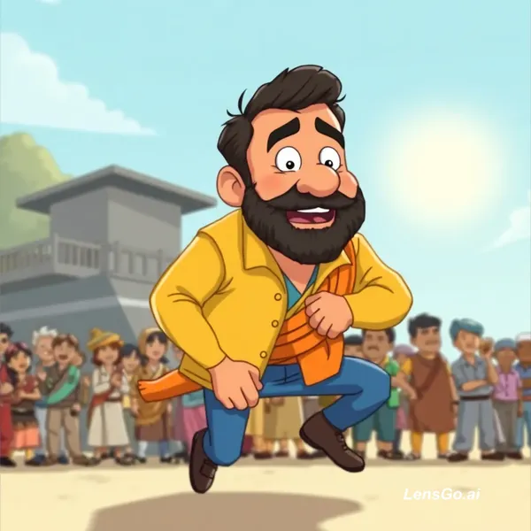 AI Image: Sunny deol, deini dail and many people with ghatak film character image cartoon funny like
