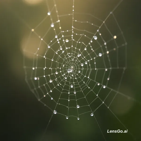 AI Image: Macro photograph of morning dew on spider web, bokeh background
