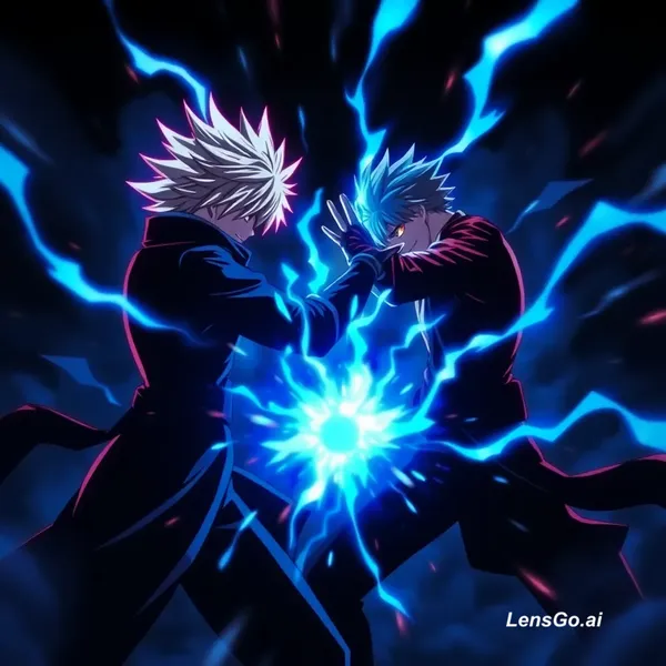 AI Image: anime fight edit, ichigo kurosaki style, fast cuts, dark, glowing blue energy, intense battle, cinem