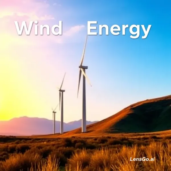 AI Image: now make the next slide say this.. title of the slide:Wind Energy. Body: Wind turns large turbines P