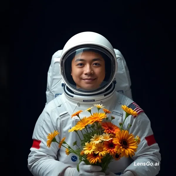 AI Image: Studio portrait of an astronaut holding flowers, dramatic lighting us mn bode thyrado or din ko thor