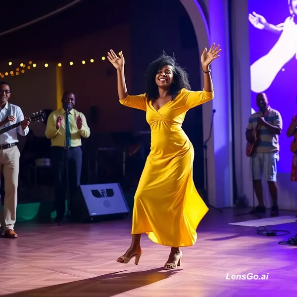 AI Image: A lady in yellow dancing to a gospel tune