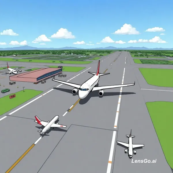 AI Image: Please draw me an airport from the plane I sent, complete with a runway, passenger terminal, and at