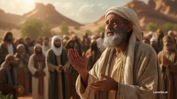 AI Image: A cinematic animated historical scene in 7th-century Arabia: a humble man, Sayyiduna Masin ibn Ghadw