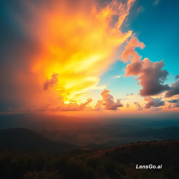 AI Image: Breathtaking cinematic landscape photo, golden hour lighting, dramatic clouds, vibrant colors, ultra