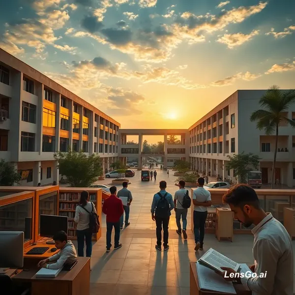 AI Image: Create a cinematic inspirational video about student life at SV Polytechnic College Bhopal. Show sun