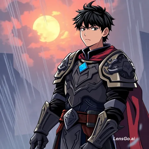 "ksatria laki-laki muda usia 18-20 tahun, rambut hitam pendek, mata tajam, ekspresi dingin tanpa emosi, memakai armor perak gelap dengan aksen cahaya biru, jubah panjang sedikit robek, membawa pedang yang sedikit bercahaya, armor penuh goresan bekas pertempuran, karakter konsisten" 🎬 PART 1 - HOOK (Bikin Penasaran) Prompt: "gaya anime, medan perang setelah pertempuran besar, ratusan prajurit tergeletak, seorang ksatria muda berdiri sendirian di tengah, memegang pedang bercahaya, langit merah gelap, hujan turun, pencahayaan dramatis, angin meniup jubah, kamera perlahan zoom ke arah wajah, cinematic, emosional, sangat detail, 4K, karakter sama"