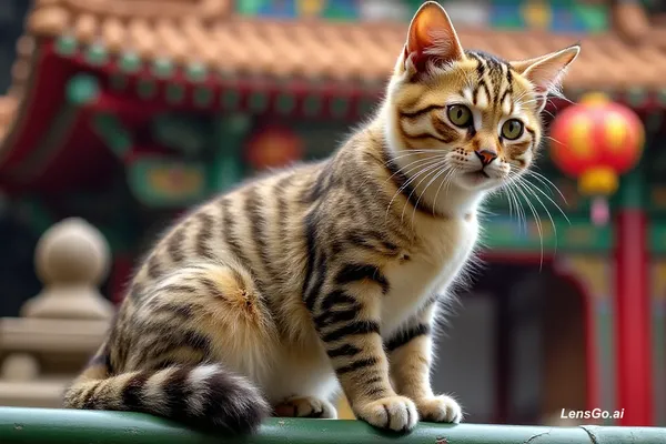 AI Image: a cute cat visit the Hong Kong Wong Tai Sin Temple