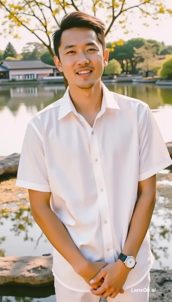 AI Image: A serene Japanese garden at golden hour, koi pond reflecting cherry blossoms