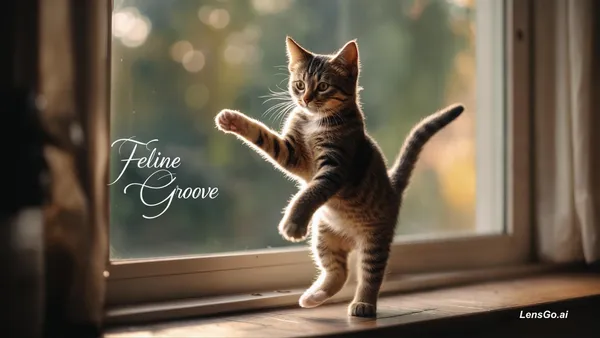 AI Image: বিড়ালটি জানালা ধরে ডান্স করছে, shot on modular 8K digital cinema camera, standard prime lens, 35mm