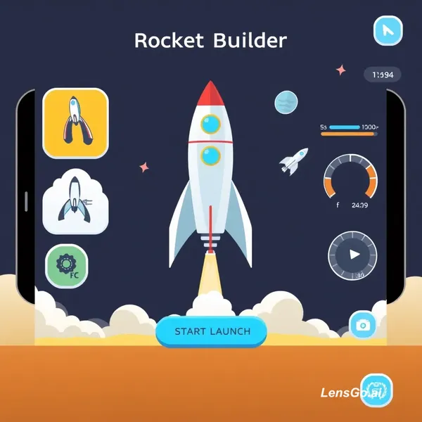 AI Image: Create a mobile game app called “Scientist – Rocket Builder”. The game should allow players to desig