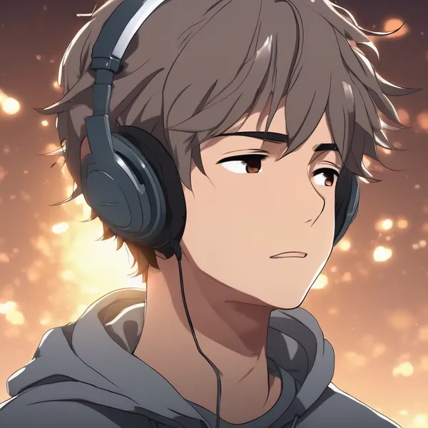 AI Image: Close-up shot, anime cinematic style. Boy closes his eyes as music starts. Emotional calm, relaxed e
