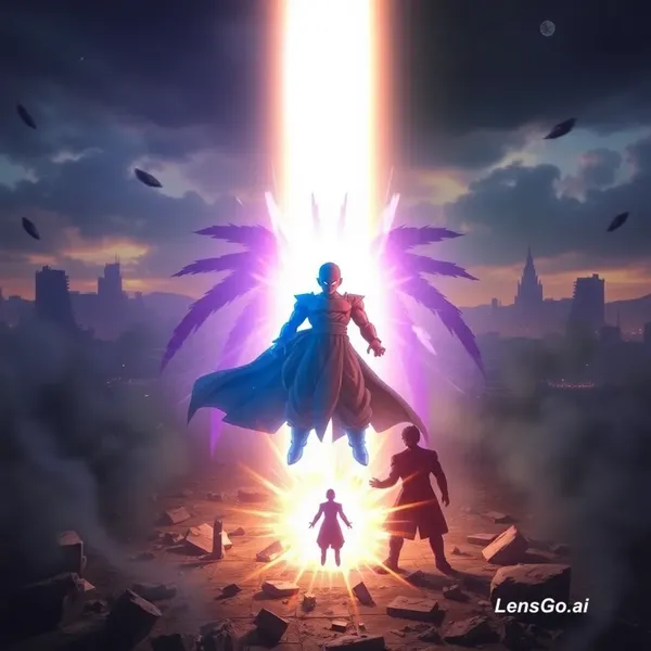 AI Image: drops ποΈ Scene 1: Entry (0-10 sec) Prompt (visual): Dark battlefield, broken city, purple aura spre