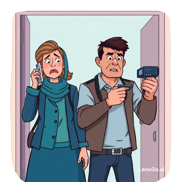 AI Image: digital art, cartoon crime stories style ( (Mother and father call the police in a state of panic)