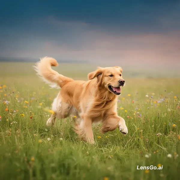 AI Image: a golden retriever running through a meadow