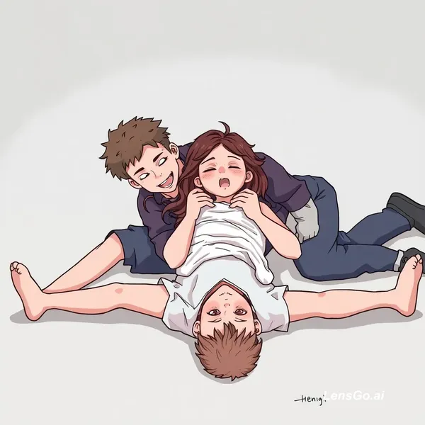 AI Image: The girl is lying on her back on the ground with her legs spread wide. One of the boys is lying on t