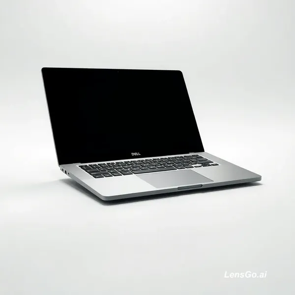 "High-end luxury tech commercial advertisement for Dell Precision 5550 laptop, cinematic product photography style, the laptop placed slightly open at a 30-degree angle on a flawless white infinity studio surface, premium brushed aluminum finish with realistic reflections, soft diffused studio lighting with precise rim lighting outlining edges, subtle shadows for depth, ultra-clean minimal composition inspired by Apple global keynote ads, large negative space for typography placement, background pure white with soft gradient falloff, ultra-realistic materials, shallow depth of field, shot on 50mm professional lens, perfect symmetry and balance, calm premium corporate mood, no clutter, no distractions, global tech brand identity aesthetic, ultra-detailed, 8K resolution, hyper-realistic commercial product render"