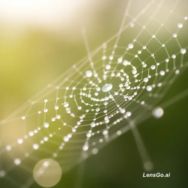 AI Image: Macro photograph of morning dew on spider web, bokeh background