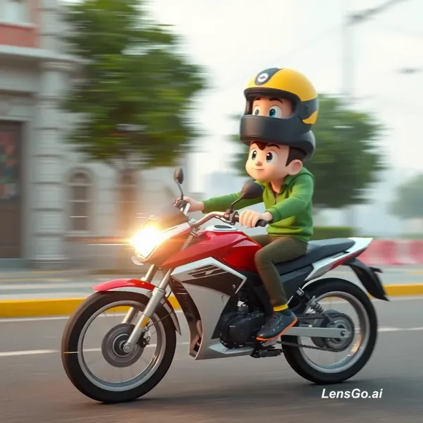 cartoon, animation, CGI, clean video, modern camera, 4k, unreal engine, fake motion, smooth camera, AI artifacts, glitch, distorted bike