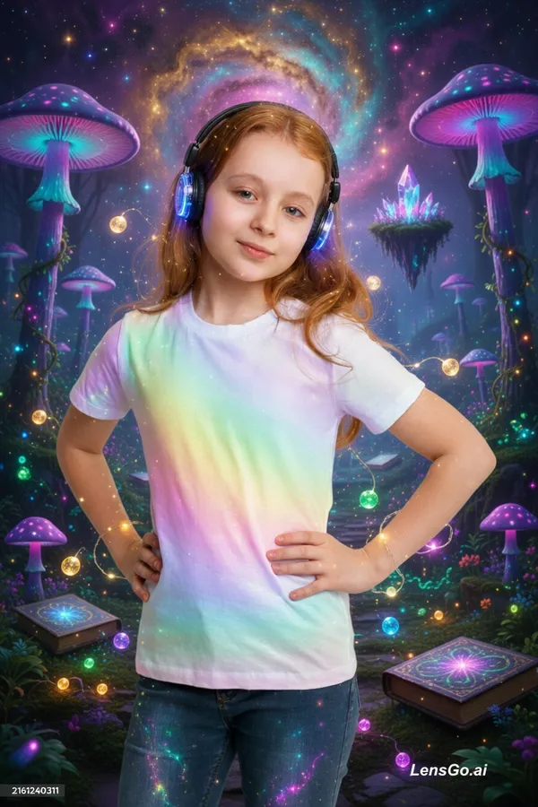 AI Image: Turn this image into a fantasy scene with glowing lights, magical atmosphere, vibrant colors, and su