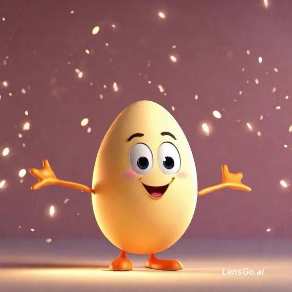 AI Image: Cute 3D Egg character with expressive face, standing upright, arms/hands subtle, studio background w