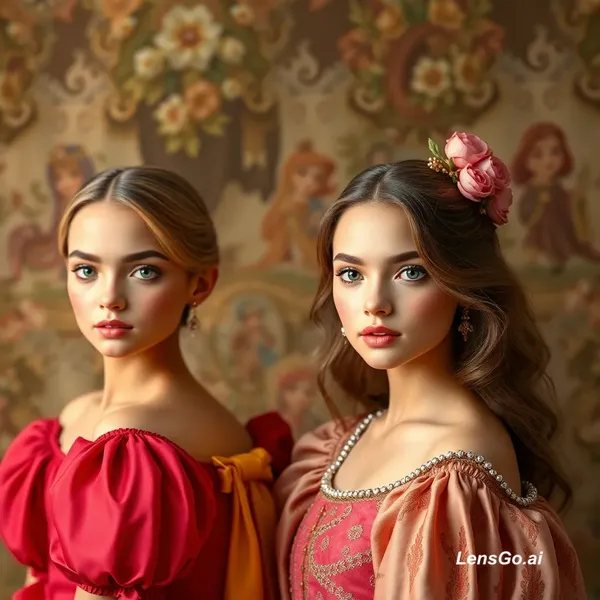 The way the girls are dressed in this image remains exactly the same, but you have to change the color of the same dressing, change the girls' faces, and add beautiful faces.