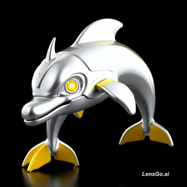 AI Image: Create a 3D Pixar style image of a transformer dolphin in silver, yellow and shiny show it to be ver