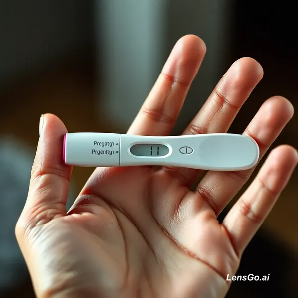 Ultra-realistic photo edit of a human hand holding a positive pregnancy test. The pregnancy test should be naturally placed between the fingers, perfectly aligned with the hand’s perspective, matching the original lighting, shadows, skin tones, depth of field, and camera grain. The test display clearly shows a positive result (two visible lines). Maintain photorealism, high resolution, accurate reflections, soft natural light, seamless integration, no distortion, no extra fingers, no artifacts, documentary-style photography.