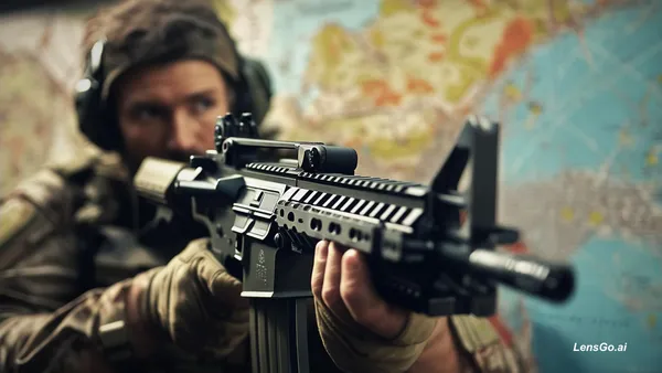 AI Image: creat oubg pc fpp photo wuth m4 gun and fpp styls and arengal mape, shot on modular 8K digital cinem